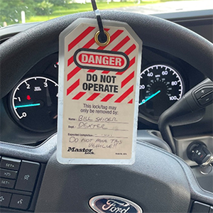 - If you plan to be under your trailer while it is connected to a tow vehicle, set the tow vehicle parking brake, place chocks, put a warning tag on the steering wheel, and then lock the doors of the tow vehicle and secure the tow vehicle keys from others before going under the trailer.