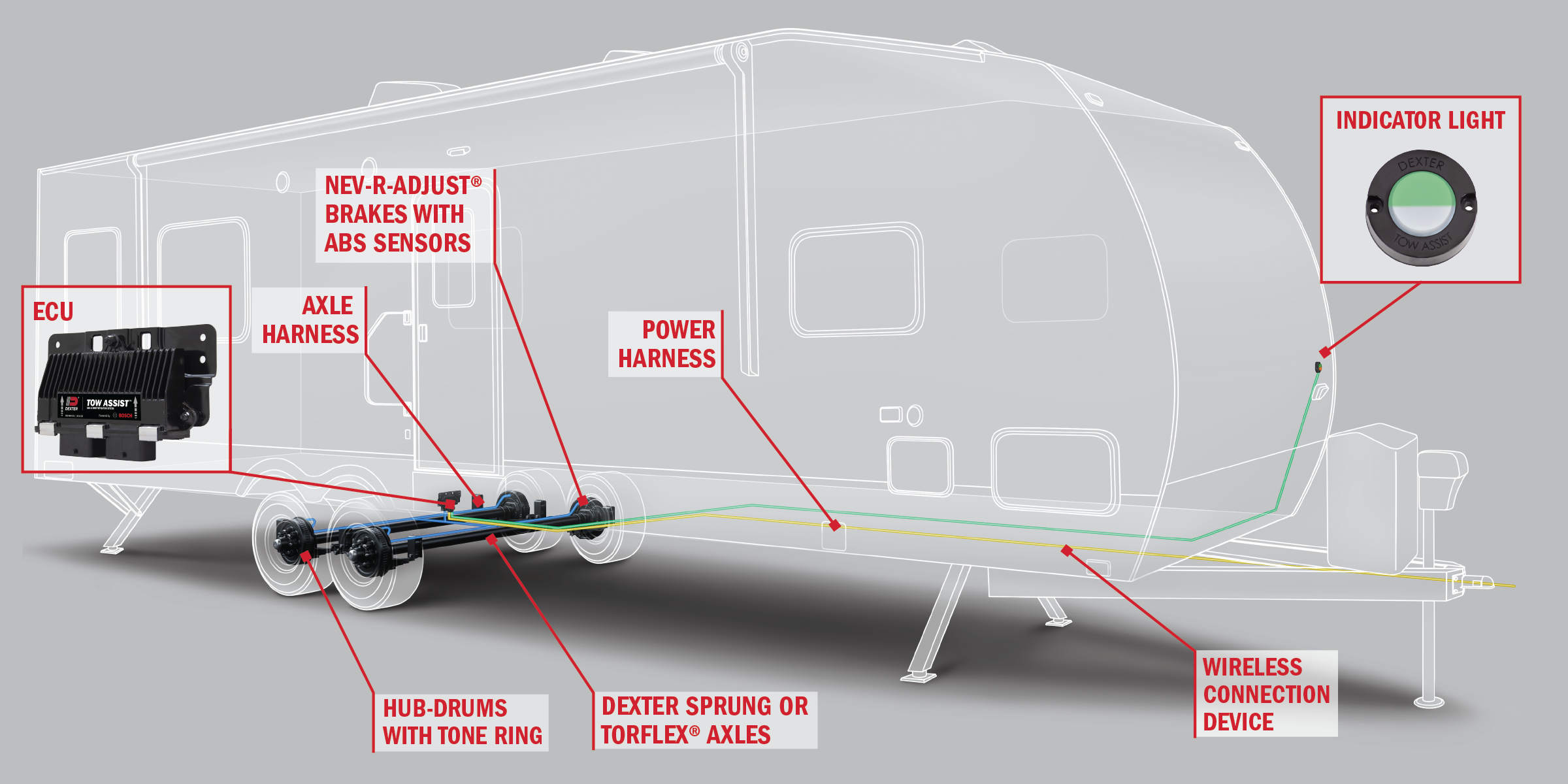 Tow Assist is a revolutionary system that will change the towing industry featuring Anti-Lock Braking, Sway Mitigation, and a Towable Odometer. Dexter has partnered with Bosch, a leader in automotive safety technology, to bring proven intelligence and reliable functionality to the trailer towing market.